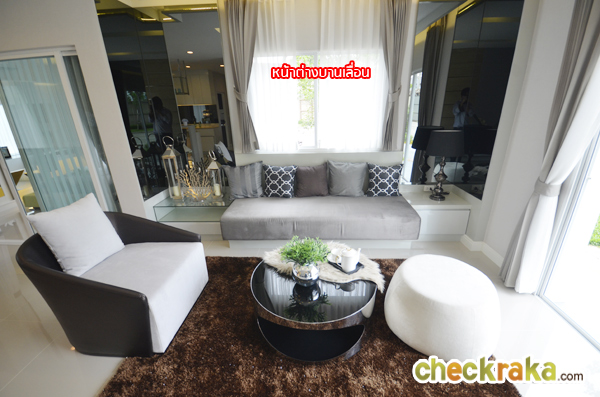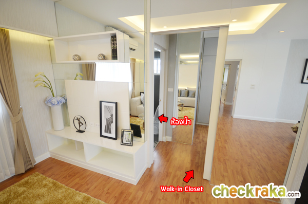 บ้านที่ส่งมอบลูกค้าจะไม่มีกระจกบานนี้ จะมองเห็นเป็นห้องโล่งๆสำหรับทำ Walk in Closet ค่ะ