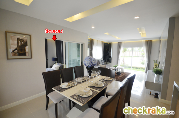 ติดตั้งแทงค์น้ำ, ปั๊มน้ำ ติดตั้งระบบกำจัดปลวก จัดสวน แอร์ Hitashi 4 เครื่อง พร้อมติดตั้ง (มาตรฐานโครงการ) ฟรี ค่าธรรมเนียมโอนกรรมสิทธิ์ ทำเลที่ตั้ง และการเดินทาง - โครงการนี้ตั้งอยู่บนถนนนครอินทร์ ฝั่งขาออก ถ้าตรงมาจากสะพานพระราม 5 และต่อด้วยสะพานข้ามคลองอ้อมนนท์จะยังไม่สามารถเข้าตัวโครงการได้ทันที เนื่องจากติดแท่นแบริเออร์บริเวณทางเข้าโครงการจึงต้องขับไปวนที่วงเวียนพระราม 5 และกลับรถใต้สะพานอ้อมนนท์ถึงจะชิดซ้ายเพื่อเข้าโครงการได้ อาจจะรู้สึกว่าเข้า-ออกค่อนข้างลำบาก แต่เหตุผลที่มีการนำแท่นแบริเออร์มาตั้งตรงช่วงทางลงสะพานก่อนเข้าโครงการก็ช่วยลดอุบัติเหตุของรถที่จะสวนกันระหว่างตรงทางเข้าโครงการค่ะ และสำหรับการเดินทางด้วยรถไฟฟ้า (สายอนาคต) ก็ค่อนข้างสะดวกทีเดียวค่ะ เพราะสายรถไฟฟ้าที่ใกล้ที่สุดได้แก่ สายสีม่วง ช่วงบางใหญ่ - บางซื่อ โดยใช้เวลาเดินทางไปสถานีบางรักใหญ่แค่ 10 นาทีเท่านั้น สภาพแวดล้อมรอบโครงการ - โดยรวมถือว่าดีมากในเรื่องของอาหารการกินเลยค่ะ เพราะโครงการนี้ตั้งอยู่ระหว่างย่านพระราม 5 กับราชพฤกษ์ ข้ามสะพานพระราม 5 ไปก็เป็นแหล่งร้านอาหารที่ล้วนแต่มีบรรยากาศดีกันแทบทุกร้าน เช่นร้านไก่ย่างโคราช, ร้านพะนะคอน 5, เพสไทม์ หรือจะเปลี่ยนไปช่วงราชพฤกษ์ก็มีทั้ง The Walk, The Crystal, Homeworks และ Homepro แต่ถ้าอยากจะหาซื้ออาหารสด ก็สามารถขับรถตรงขึ้นไปตามถนนนครอินทร์ ผ่านวงเวียนพระราม 5 เข้าแยกที่ 2 ก็จะเจอกับตลาดสดพระราม 5 ที่มีทั้งผัก ผลไม้ และอาหารหลากหลายชนิดให้คุณแม่บ้านได้เลือกซื้อกันค่ะ ตัวโครงการโดยรวมและส่วนกลาง - ทางเข้าหลักของโครงการอยู่ติดหน้าถนนใหญ่นครอินทร์ แต่ส่วนที่อยู่อาศัยและซุ้มประตูของโครงการ อยู่ลึกเข้าไปด้านใน ทำให้ลดปัญหาด้านเสียงและฝุ่นควันที่มาจากการจราจรได้ดีทีเดียว พื้นที่โดยรอบเป็นพื้นที่ว่างส่วนบุคคล และที่อยู่อาศัยแนวราบเช่นเดียวกัน ทำให้มีความสงบ มีความเป็นส่วนตัว ไม่พลุกพล่าน พื้นที่โครงการทั้งหมด 67 ไร่ โดยมีบ้านทั้งหมด 247 หลัง บรรยากาศโดยรวมถือว่าไม่อึดอัด เพราะบ้านแต่ละหลังมีบริเวณของตัวเอง ถนนภายในซอยสวนกันได้สะดวก แล้วการจัดสรรบ้านแต่ละซอยมีจำนวนหลังไม่มาก สำหรับส่วนกลาง (กำลังอยู่ในระหว่างการก่อสร้าง) มีสวนสาธารณะให้ถึง 2 จุด น่าจะถูกอกถูกใจสำหรับคนที่ชอบพื้นที่ทีสีเขียว อาจจะต้องคอยดูว่า เมื่อทางโครงการสร้างเสร็จเรียบร้อยแล้ว สวนที่ให้มาจะมีต้นไม้เต็มที่หรือไม่ ภายในโครงการมี Club House สระว่ายน้ำ Smart Water Pool และมีฟิตเนสให้ด้วย ทำให้โครงการมีสิ่งอำนวยความส