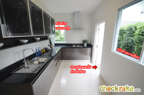 ห้องครัวบ้านที่ส่งมอบลูกค้าจะเป็นห้องเปล่า ไม่มีเคาน์เตอร์มาให้นะคะ ภายในครัวมีหน้าต่างให้ 2 บาน
