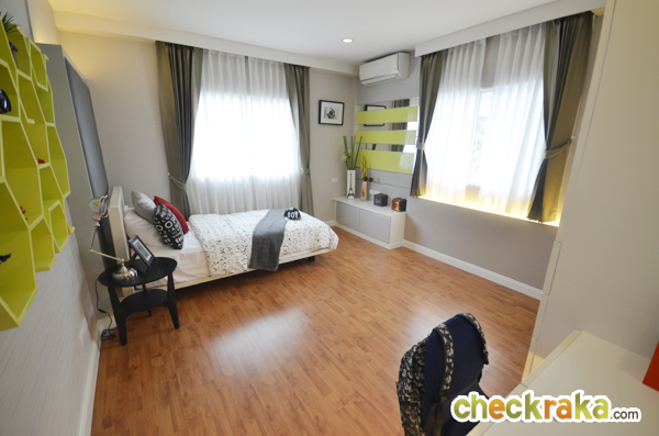 ห้องนอนที่ 4 ด้านในสามารถวางเตียงขนาด 3.5 ฟุตได้ พร้อมวางตู้เสื้อผ้า โต๊ะเครื่องแป้ง แล้วยังมีหน้าต่างบานเลื่อน