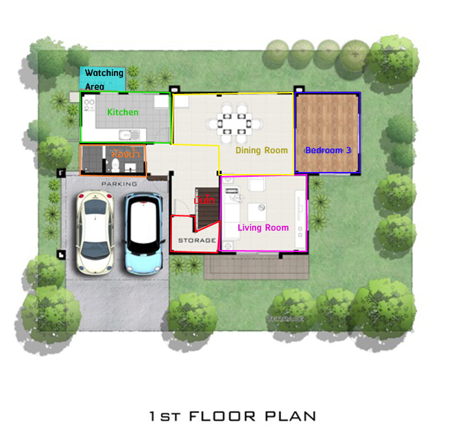 ก่อนจะไปชมบ้าน เรามาดูแปลนบ้านชั้น 1 กันค่ะ