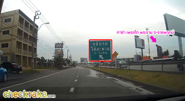 ทางซ้ายมือ บอกให้กลับรถ เริ่มเห็นทางเข้าโครงการฝั่งตรงข้ามแล้วค่ะ เตรียมชิดซ้ายเพื่อกลับรถใต้สะพานข้ามคลองอ้อมนนท์
