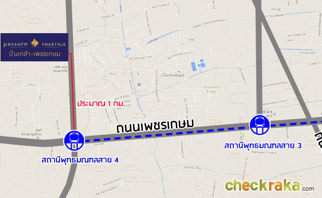 ปิ่นเกล้า - เพชรเกษม และพฤกษาวิลล์ 77 พุทธมณฑลสาย 4 เนื่องจากทั้ง 2 โครงการใช้ทางเข้าทางเดียวกันค่ะ