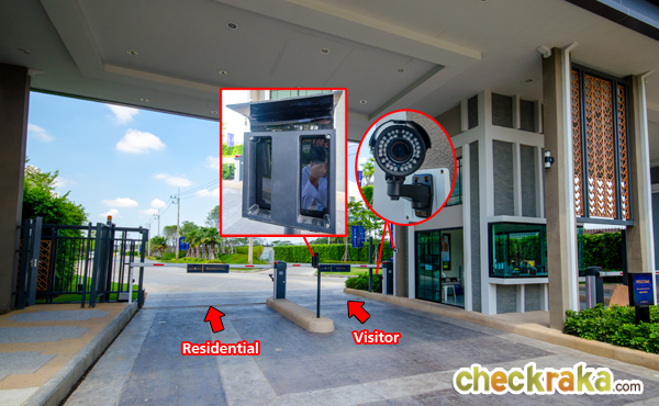 ประตูทางเข้าแยกระหว่างลูกบ้าน กับคนภายนอกที่มาติดต่อ ซึ่งทำให้คนที่อาศัยภายในโครงการมีความสะดวกยิ่งขึ้นเพราะไม่ต้องเสียเวลารอคนภายนอกที่กำลังแลกบัตร ที่ซุ้มประตูมี รปภ. ไม้กั้นกระดก CCTV บริเวณที่สแกนคีย์การ์ดเข้า-ออกโครงการ มีห้องสำหรับรปภ. กั้นตรงกลางระหว่างทางเข้าและทางออก