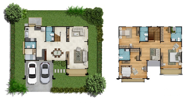 1) แบบบ้าน PALATIAL - บ้านเดี่ยว 2 ชั้น ขนาดที่ดิน 60 ตร.ว.ขึ้นไป มีพื้นที่ใช้สอย 215 ตารางเมตร ประกอบไปด้วย 3 ห้องนอน 4 ห้องน้ำ ห้องรับแขก ส่วนรับประทานอาหาร ห้องอเนกประสงค์ชั้นล่าง พื้นที่เตรียมอาหาร ห้องครัว ห้องแม่บ้านพร้อมห้องน้ำ พื้นที่พักผ่อนชั้นบน และจอดรถได้ 2 คัน