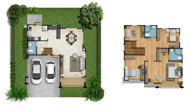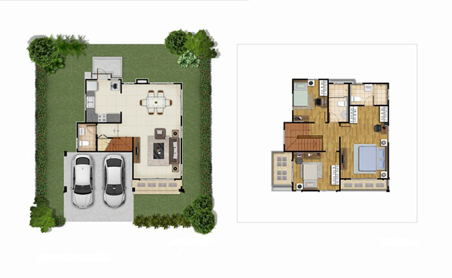 3) แบบบ้าน PRIVATO - บ้านเดี่ยว 2 ชั้น ขนาดที่ดิน 50 ตร.ว.ขึ้นไป มีพื้นที่ใช้สอย 180 ตารางเมตร ประกอบไปด้วย 3 ห้องนอน 3 ห้องน้ำ ห้องรับแขก ส่วนรับประทานอาหาร พื้นที่เตรียมอาหาร ห้องครัว พื้นที่พักผ่อนชั้นบน และจอดรถได้ 2 คัน