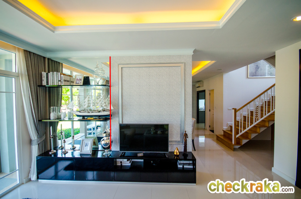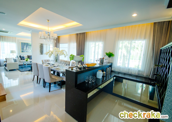 แบบบ้าน PALATIAL หลังนี้เป็นบ้านตัวอย่างที่ตกแต่งเฟอร์นิเจอร์ทั้งหลัง สังเกตได้ว่าตัวบ้านออกแบบสไตล์เรียบๆ