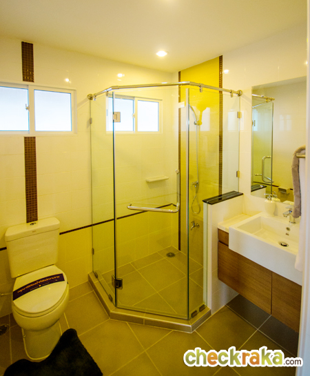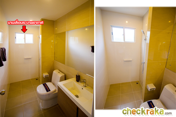 พื้นที่อาบน้ำแยกส่วนโดยมีกระจกนิรภัยกั้นอาบน้ำมาให้ และมีบานเลื่อนระบายอากาศ 1 จุด
