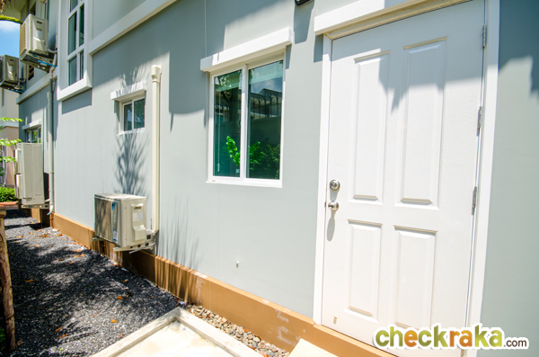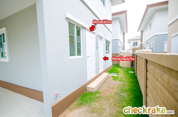 ด้านข้างบ้านอีกฝั่งเป็นห้องแม่บ้าน พร้อมหน้าต่างบานเลื่อน และห้องน้ำแม่บ้าน ที่มีสุขภัณฑ์ให้ครบ
