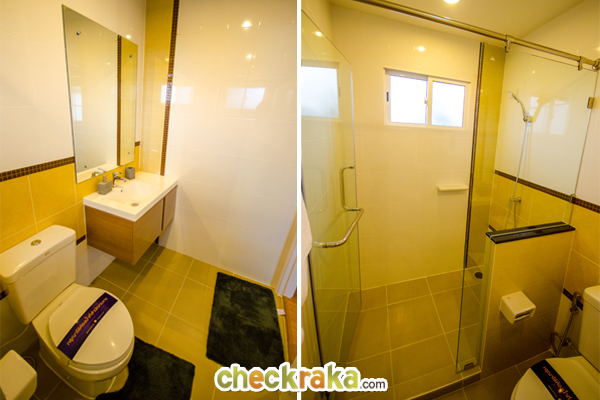 ห้องน้ำของห้องนอน 3 มีสุขภัณฑ์ให้ครบ ตามที่เห็นนี้เลยนะคะ มีประตูกระจกกั้นแยกส่วนเปียก/แห้งให้