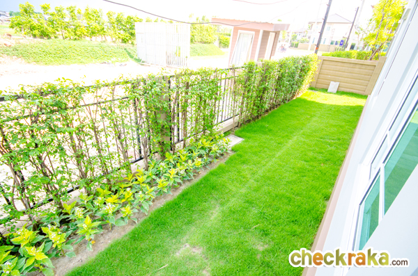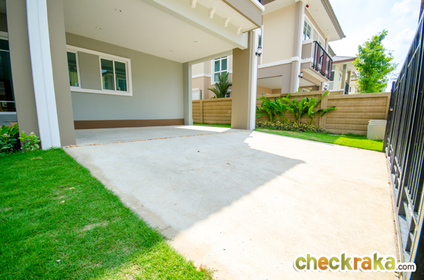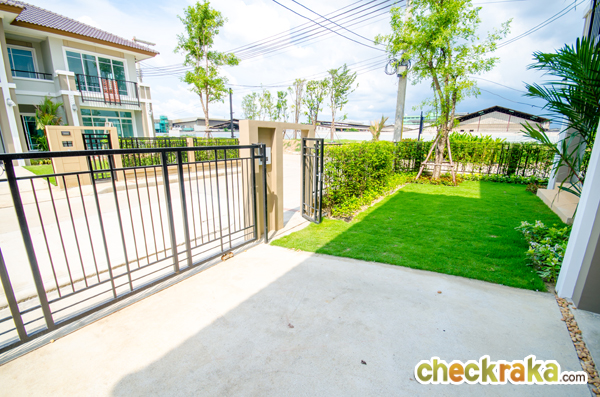 บ้านตัวอย่างหลังนี้เป็นบ้านหลังมุม มีพื้นที่พอสมควรสำหรับจัดสวน ปูหญ้า ตัวบ้านที่ส่งมอบลูกค้า