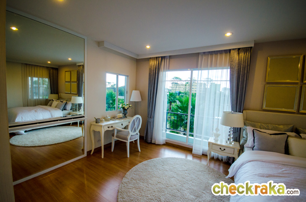 มีพื้นที่สำหรับวางตู้เสื้อผ้า โต๊ะเครื่องแป้ง พื้นที่ปลายเตียงเหลือเล็กน้อย