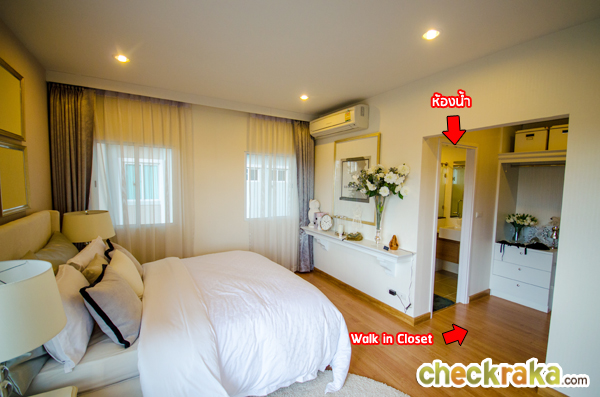 ห้องนี้เป็นห้องที่มีขนาดใหญ่ที่สุดในบ้านหลังนี้เลยค่ะ อีกฝั่งนึงจะเป็น Walk-in Closet และห้องน้ำในตัว