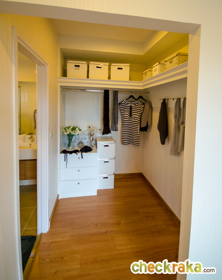 Walk in Closet ที่ทางโครงการ Built in ขึ้นมา ทางเข้าห้องน้ำก็อยู่ในส่วนนี้ คือประตูที่เห็นด้านซ้ายนี่เองค่ะ