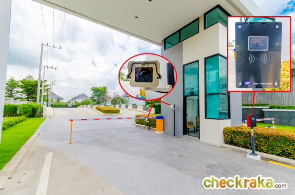 ที่ซุ้มประตูทางเข้ามีทั้ง รปภ. Access Card ระบบ Bluetooth, ไม้กั้นกระดก และ CCTV (ที่ซุ้มมีกล้อง 2 จุด)