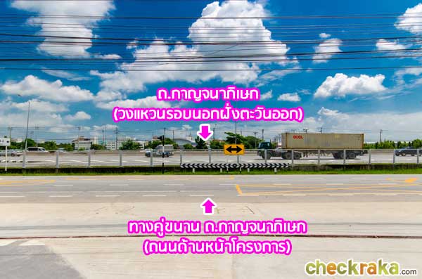 ส่วนด้านนอกที่อยู่ริมรั้วออกไปก็คือ ถนนกาญจนาภิเษก (วงแหวนรอบนอกฝั่งตะวันออก) นั่นเองค่ะ