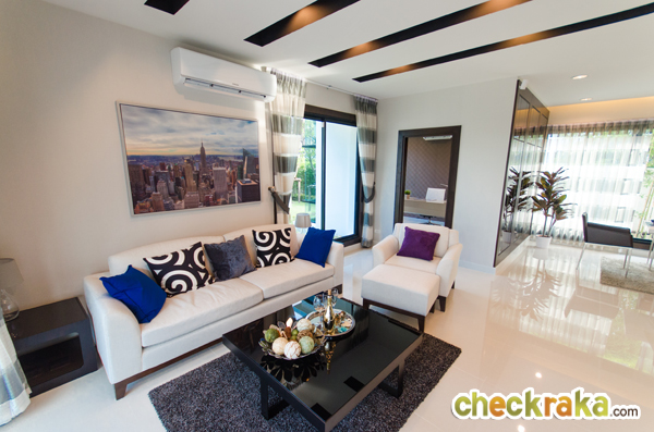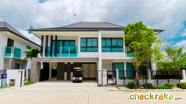 การเดินทางเข้า-ออกโครงการ - สำหรับการเดินทางเข้าออกโครงการถือว่าเป็นทำเลที่ดีสำหรับบ้านในย่านนี้ค่ะ โครงการอยู่ใกล้กับวงแหวนรอบนอกฝั่งตะวันออก และทางพิเศษบูรพาวิถี มีทางเข้าออกที่หลากหลายไม่ว่าจะมาจากถนนบางนา-ตราด, ถนนพระราม9 และถนนอ่อนนุช-ลาดกระบัง ส่วนถ้าเป็นการเดินทางด้วยรถไฟฟ้า ก็มีทางเลือกอย่างรถไฟฟ้า Airport Rail Link สถานีบ้านทับช้าง ที่อยู่ห่างโครงการประมาณ 6.5 กม. โดยรวมแล้วการเดินทางเข้าออกโครงการถือว่าดีค่ะ สภาพแวดล้อมรอบโครงการ - สำหรับสภาพแวดล้อมโครงการ แหล่งจับจ่าย และสิ่งอำนวยความสะดวกต่างๆ นั้นถือว่าอยู่ไม่ไกลจากโครงการเลยค่ะ ถ้าเป็นใกล้ๆก็จะมี Lake View Sports Club ซึ่งจะมีร้านค้า, ร้านอาหาร และร้านสะดวกซื้อ 7-Eleven อยู่ ส่วนถ้าเป็นโซนใกล้ๆม.ราม2 ก็จะมีตลาดนัมเบอร์วัน-ราม2, ราม2 ไนท์บาซาร์ และนัมเบอร์วัน พลาซ่า ให้จับจ่าย และถ้าขับรถออกไปตรงโซนถนนบางนา-ตราด ก็จะมีทั้ง Mega Bangna, IKEA และ Tesco Lotus โดยรวมแล้วสภาพแวดล้อมโครงการถือว่าดีค่ะ ตัวโครงการโดยรวมและส่วนกลาง - ทางเข้าหลักของโครงการอยู่ติดหน้าถนนคู่ขนานวงแหวนตะวันออก แต่ส่วนที่อยู่อาศัยอยู่ลึกเข้าไปด้านใน ทำให้ลดปัญหาด้านเสียงและฝุ่นควันที่มาจากการจราจรได้พอประมาณ พื้นที่โดยรอบเป็นพื้นที่ว่างส่วนบุคคล และที่อยู่อาศัยแนวราบเช่นเดียวกัน ทำให้มีความสงบ มีความเป็นส่วนตัว ไม่พลุกพล่าน พื้นที่โครงการทั้งหมด 47 ไร่ โดยมีบ้านทั้งหมด 151 หลัง บรรยากาศโดยรวมถือว่าไม่อึดอัดมากนัก เพราะบ้านแต่ละหลังมีบริเวณของตัวเอง ถนนภายในซอยเชื่อมถึงกันได้สะดวก ไม่มีถนนหลักแต่แบ่งเป็นซอยย่อยทั้งหมด สำหรับส่วนกลาง (กำลังอยู่ในระหว่างการก่อสร้าง) มีสวนสาธารณะขนาดใหญ่ 7 ไร่ น่าจะถูกใจสำหรับคนที่ชอบพื้นที่ทีสีเขียวไว้ออกกำลังกาย อาจจะต้องคอยดูว่า เมื่อทางโครงการสร้างเสร็จเรียบร้อยแล้ว สวนที่ให้มาจะมีต้นไม้เต็มที่หรือไม่ เพราะในแต่ละซอยไม่ได้มีต้นไม้ใหญ่หรือสวนมากนัก ภายในโครงการไม่มี Club House ไว้บริการ แต่ถ้ามองในอีกแง่หนึ่ง การไม่มี Club House จะช่วยลดค่าใช้จ่ายส่วนกลางไปได้เยอะเลยทีเดียว แบบบ้านและวัสดุ - บ้านทั้ง 3 แบบ โดยรวมค่อนข้างเหมาะสมทีเดียว สามารถรองรับสมาชิกในครอบครัวได้หลายคน จุดเด่นหลักๆ ก็มีอย่างเช่น บ้าน Blue Turquoise ที่มีขนาดเล็กสุด ก็ให้ฟังก์ชั่นห้องนอนมาถึง 3 ห้องแล้ว ซึ่งบ้านที่มีขนาดใหญ่สุด Blue Diamond ให้มาถึง 4 ห้องนอน พร้อมสระว่ายน้ำ และวัสดุภายในจะให้เกรดดีกว่าแบบอื่น ส่วนดีไซน์ตัวบ้านสไตล์โมเดิร์นแต่ไม่หวือหวา ทางโครงการปูหญ้ารอบๆบ้านมาให้ ติดตั้งสัญญาณกัน