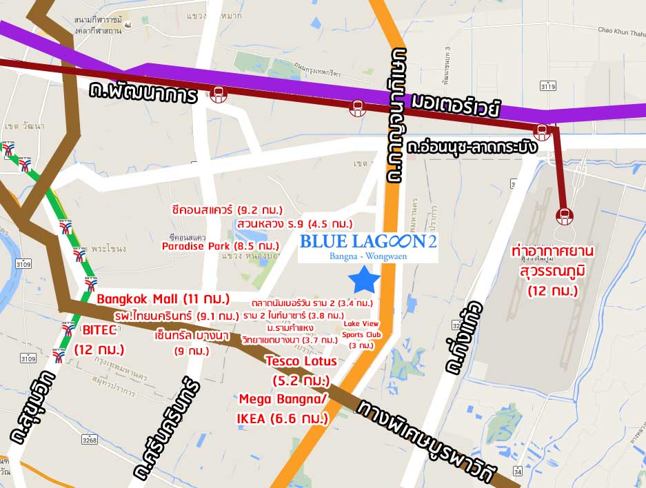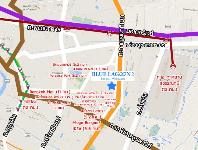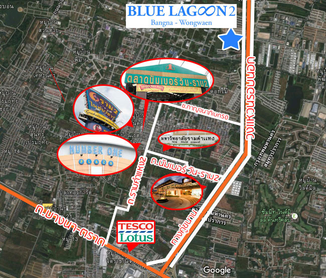 แผนที่ตั้งโครงการ บลูลากูน 2 บางนา-วงแหวน (