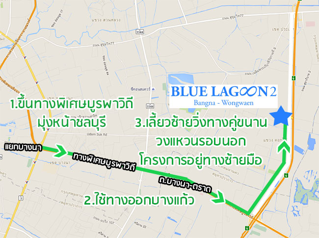ตรงมาจากแยกบางนา ขึ้นทางพิเศษบูรพาวิถี ให้ตรงมาเรื่อยๆ เลยค่ะ