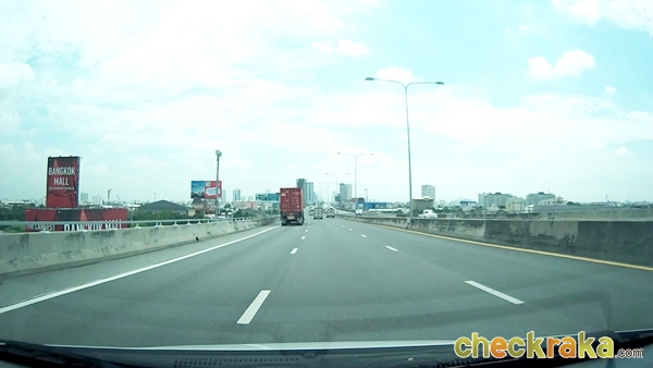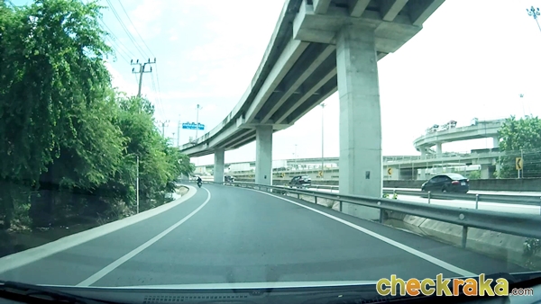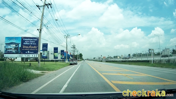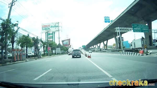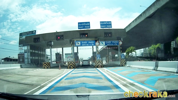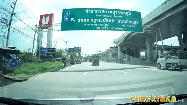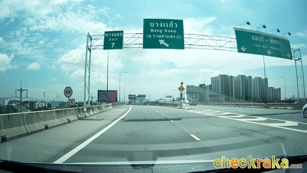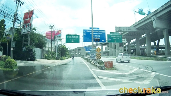จากนั้นจะเริ่มเห็นป้ายบอกทางเข้าถนนกาญจนาภิเษก (วงแหวนรอบนอกฝั่งตะวันออก) แสดงว่าเราใกล้ถึงแล้วค่ะ