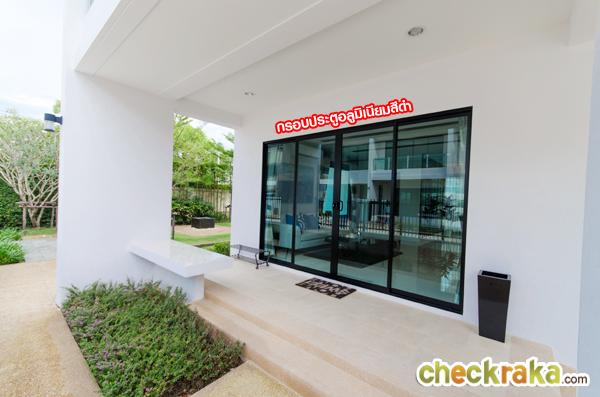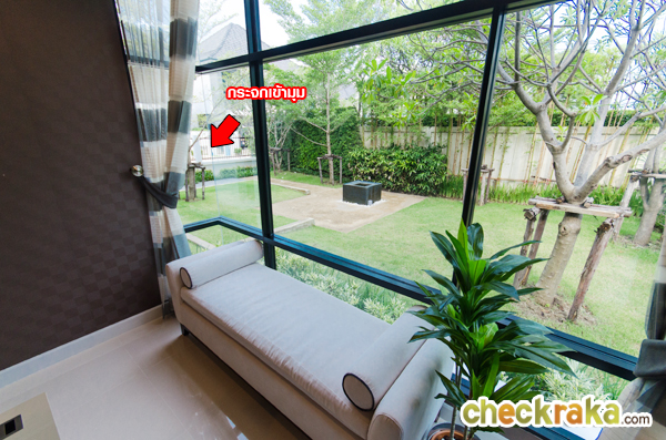 แบบบ้านตัวอย่างพร้อมตกแต่งมีลักษณะคล้ายกันกับแบบที่ผ่านมา มีประตูกระจกและหน้าต่างรอบบ้านเลยค่ะ