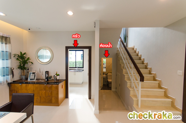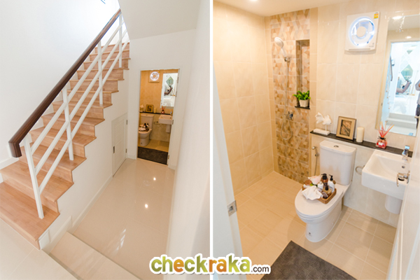 กลับเข้ามาข้างในบ้าน ถัดจากห้องครัวคือทางเข้าห้องน้ำชั้นล่าง จะอยู่ข้างบันไดทางขึ้นชั้น 2
