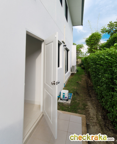 ด้านหลังบ้านสามารถเดินทะลุไปรอบๆ บ้านได้ บ้านที่นี่จะติดตั้งแทงค์น้ำ และปั๊มน้ำมาให้ด้วยนะคะ