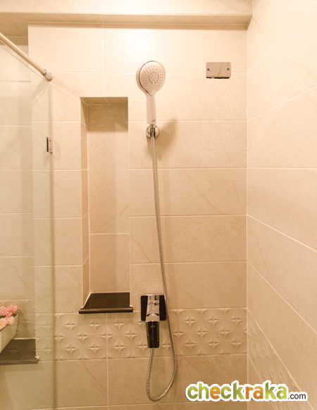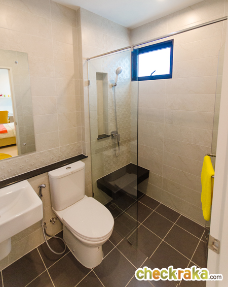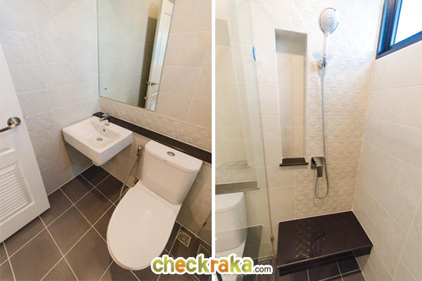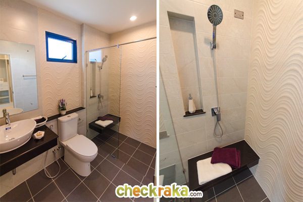 ภายในส่วนอาบน้ำ จะทำที่นั่งอาบน้ำมาให้ หรือจะใช้วางของใช้ภายในห้องน้ำก็ได้
