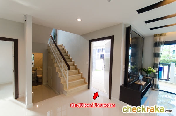 กลับเข้ามาด้านใน ข้างบันไดทางขึ้นชั้น 2 มีประตูเปิดออกไปลานจอดรถโดยไม่ต้องผ่านส่วนรับแขก
