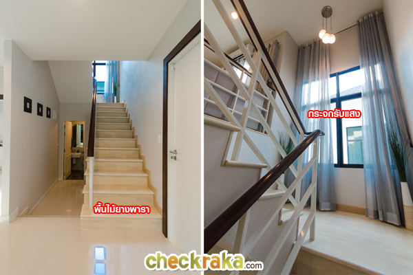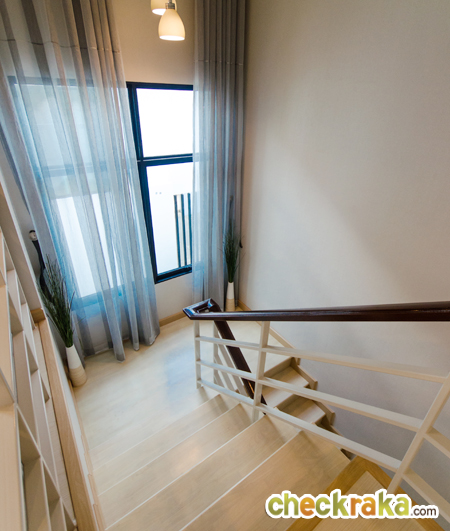 เดินแล้วไม่มีเสียงดัง ตัวบันไดมีชานพักสี่เหลี่ยมขนาดใหญ่ เดินสะดวก และปลอดภัย ส่วนราวบันได