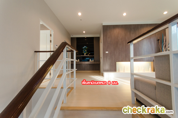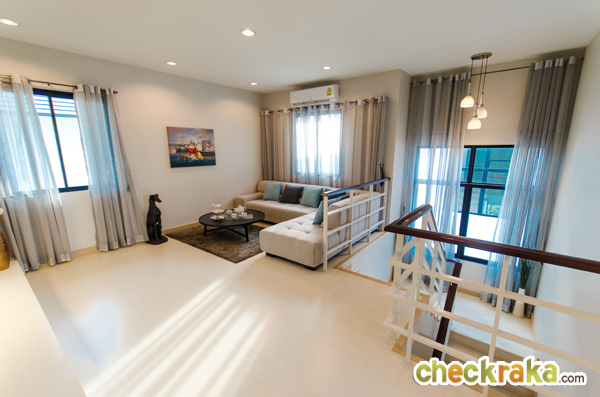 เป็นบ้านตัวอย่างที่ตกแต่งแล้วเหมือนกันค่ะ มีขนาดของพื้นที่ใช้สอยถึง 188 ตร.ม. ขนาดที่ดิน 51-62 ตร.ว. 3 ห้องนอน (3 ห้องนอนบน) 3 ห้องน้ำ (2 ห้องน้ำบน กับ 1 ห้องน้ำล่าง) 1 ห้องครัว มีพื้นที่รับแขกและรับประทานอาหาร และที่จอดรถ 2 คัน