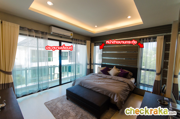 หน้าต่างบานกระทุ้ง 2 บาน ห้องน้ำในตัว และ Walk-in Closet