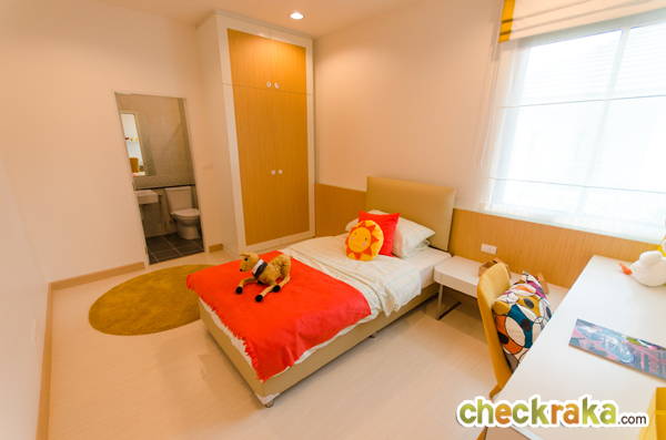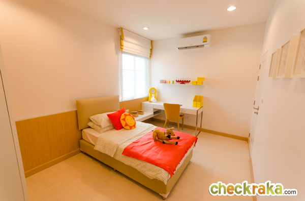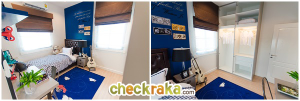 เรามาดูห้องสุดท้ายกันค่ะ ห้องนอนที่ 3 ห้องนี้ตกแต่งให้เหมาะกับเด็กๆ สามารถวางเตียงขนาด 3.5 ฟุต หรือ 5 ฟุต