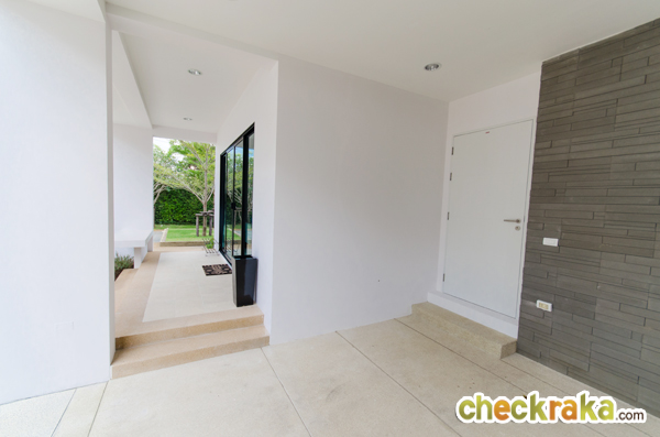 ทางเข้าด้านหน้ายกสูงขึ้น 2 ขั้นจากพื้นปกติ เฉลียงหน้าบ้านปูกระเบื้อง Cotto