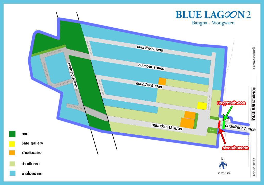 โครงการบลูลากูน 2 บางนา-วงแหวน เปิด Pre-Sale โครงการไปเมื่อประมาณเดือนมิถุนายน 2558 ที่ผ่านมา เปิดขายไล่ตั้งแต่ด้านหน้าโครงการก่อน ทยอยเปิดขายทีละเฟส บ้านในโครงการเป็นบ้านที่สร้างเสร็จพร้อมขาย มีจำนวนบ้านทั้งหมด 151 ยูนิต สำหรับเฟสแรกเปิดขายไปประมาณ 30 ยูนิต ปัจจุบันขายไปแล้ว 35% ของบ้านที่เปิดขาย โครงการกำลังทยอยสร้างบ้านในแต่ละแบบ เพื่อรองรับความต้องการของลูกค้า ซึ่งตอนนี้มีลูกค้าที่สนใจเข้ามาชมและจองบ้านไปพอสมควร เนื่องจากโครงการเพิ่งเปิดได้ไม่นาน ตัวโครงการยังดำเนินการสร้างอยู่ แต่บ้านตัวอย่างทั้ง 3 แบบมีให้ลูกค้าชมครบทุกแบบเลยค่ะ ดังนั้นหากใครที่กำลังสนใจบ้านเดี่ยว 2 ชั้น ที่มีฟังก์ชั่นใช้สอยครบครัน มีบ้านหลังใหญ่พร้อมสระว่ายน้ำในตัว และมองหาบ้านในทำเลนี้อยู่ ลองแวะไปชมบ้านจริงได้ที่โครงการได้เลยค่ะ สำนักงานขายของที่นี่เปิดทุกวัน 9.00 - 18.00 น.