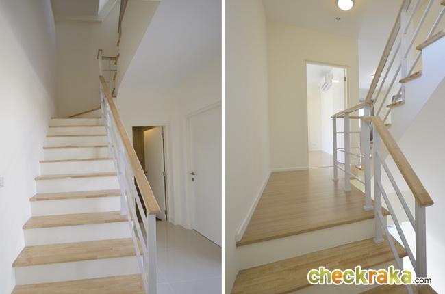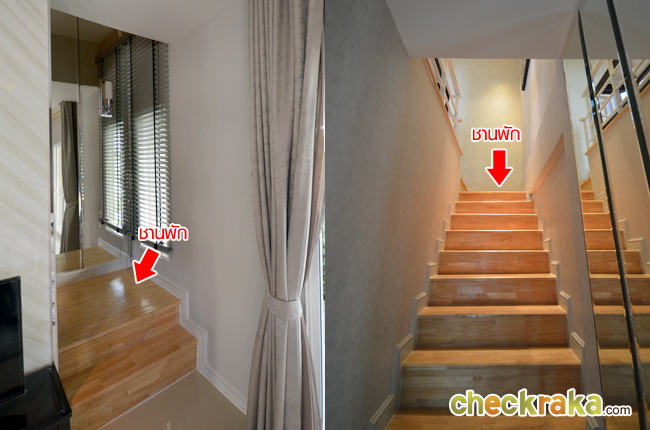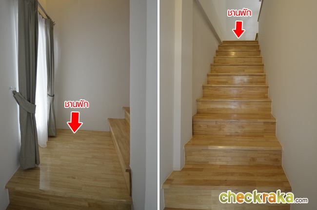 บันไดของบ้านเป็นโครงเหล็กมีชานพัก 2 จุดและมีหน้าต่างรับแสงทั้ง 2 จุดค่ะ