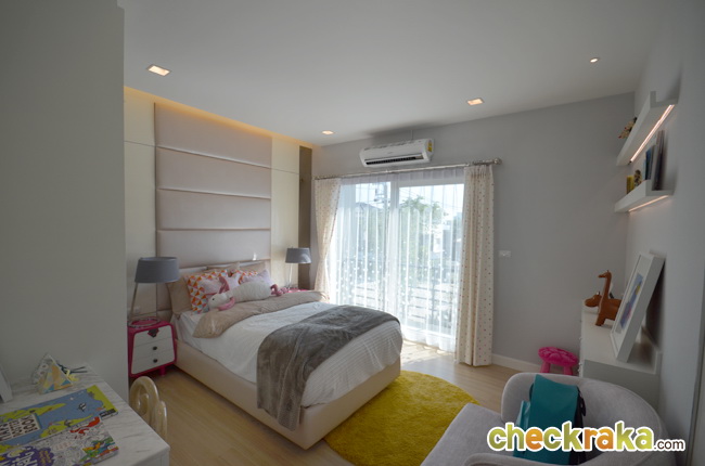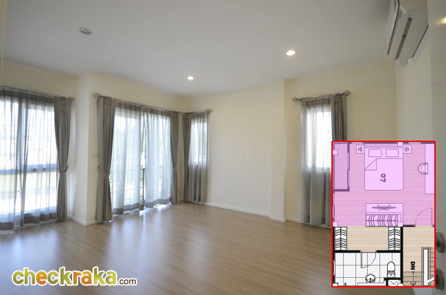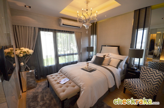 Master Bedroom วางเตียง King Size ได้ ยังมีพื้นที่ด้านข้างเหลือวางโต๊ะและเก้าอี้ได้อีกค่ะ