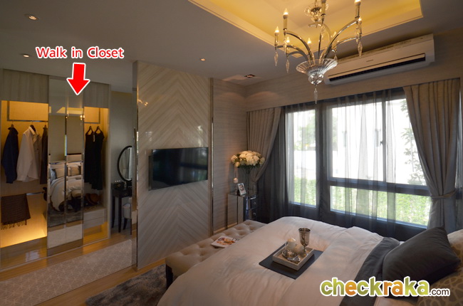 มีระเบียงในส่วน Walk in Closet สำหรับวางคอมเพรสเซอร์แอร์ได้ค่ะ