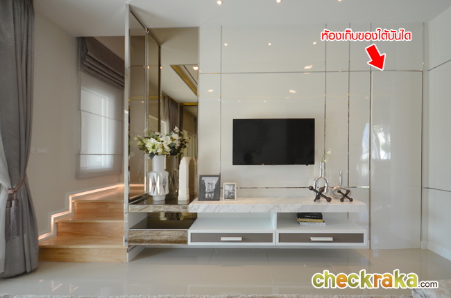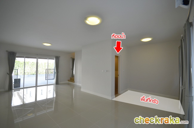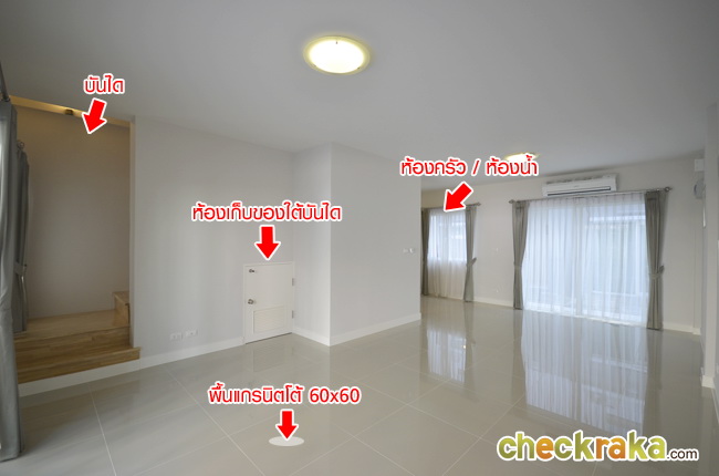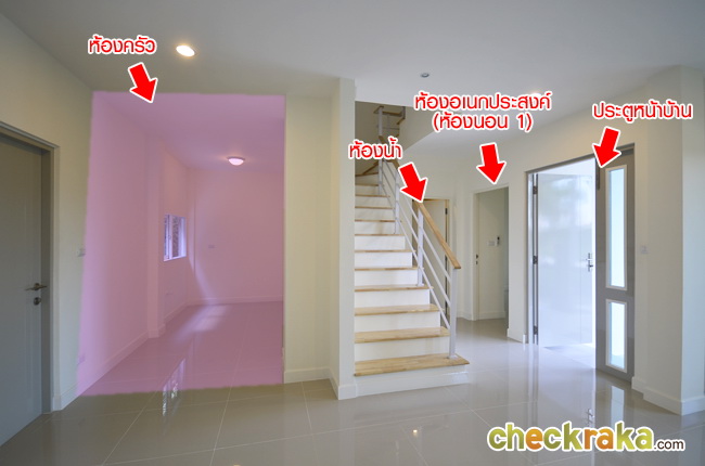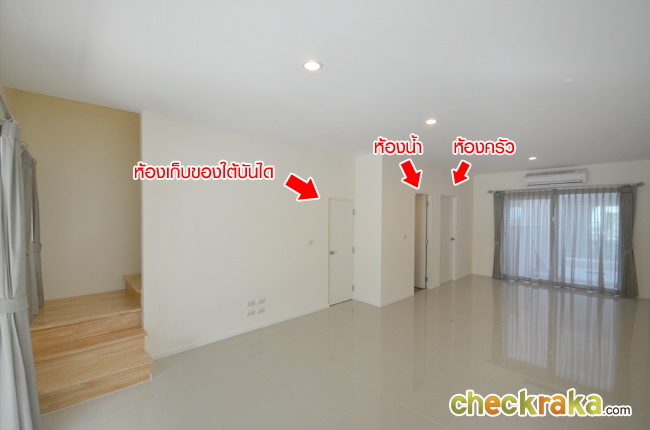 แบ่งห้องเป็นห้องน้ำ ห้องครัว และมีห้องใต้บันได ประตูใหญ่ใช้งานได้สะดวก