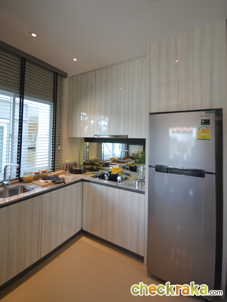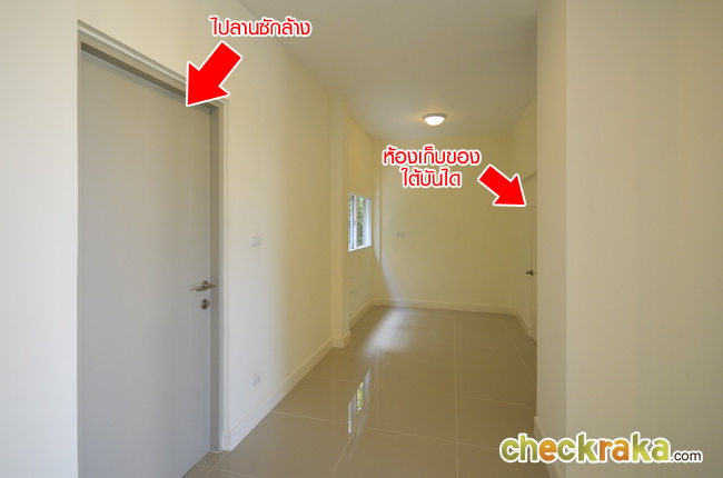 ส่วนห้องครัว เป็นพื้นที่โล่ง มีประตูหลังบ้านไปลานซักล้าง และมีห้องเก็บของใต้บันไดให้ด้วย