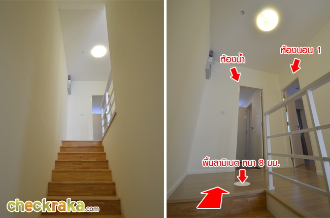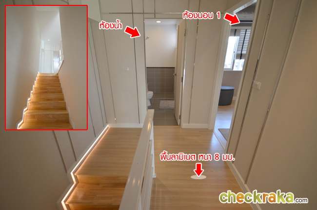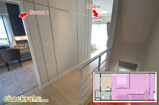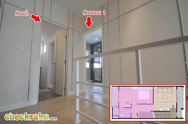 ขึ้นไปชั้นบน จะเจอกับห้องน้ำและห้องนอน 1 สามารถเข้าห้องน้ำได้จากทั้งทางห้องนอน 1 และโถงทางเดิน