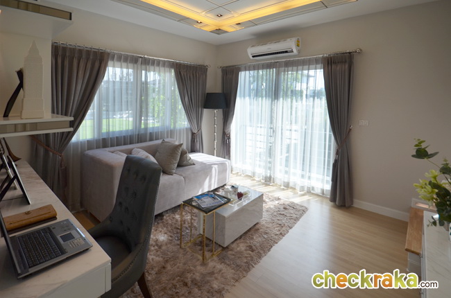 ห้องนอนที่ 2 ของโครงการตกแต่งเป็นห้องทำงาน มีหน้าต่างด้านหลัง