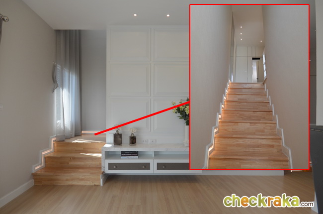 และสามารถวางโต๊ะรับประทานอาหารได้ บันไดอยู่ตรงกลางบ้าน