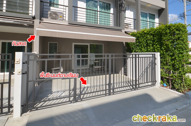 ถนนด้านหน้าโครงการเป็นถนน 2 เลนสวนกัน บริเวณด้านหน้าโครงการมีแผนจะเปิด Family Mart อยู่บริเวณหน้าทางเข้าด้านซ้ายมือ ประตูทางเข้าเป็นโครงเหล็ก สำหรับลูกบ้านสามารถผ่านระบบ Scan Access เข้าไปได้เลย ส่วนผู้มาเยี่ยมชมโครงการต้องแลกบัตรตรงป้อม รปภ. ซึ่งจะมีติดตั้งกล้องวงจรปิดอยู่ด้วย ลักษณะโครงการเป็นแนวลึกเข้าไปด้านใน Club House อยู่บริเวณตรงกลางเยื้องไปทางด้านท้ายโครงการ ถนนโครงการเป็นคอนกรีตเสริมเหล็ก แบบบ้านทั้งหมดมี 3 แบบ แบบ Perfecta เป็นทาวน์โฮม 2 ชั้น, แบบ Modernist เป็นทาวน์โฮม 3 ชั้น และแบบ X-Trend เป็นแบบบ้านแนวคิดใหม่ บ้าน 3 ชั้น ผนังติดกันในส่วนชั้น 1 ส่วนชั้น 2 และ 3 แยกออกจากกันเพิ่มความเป็นส่วนตัวยิ่งขึ้น