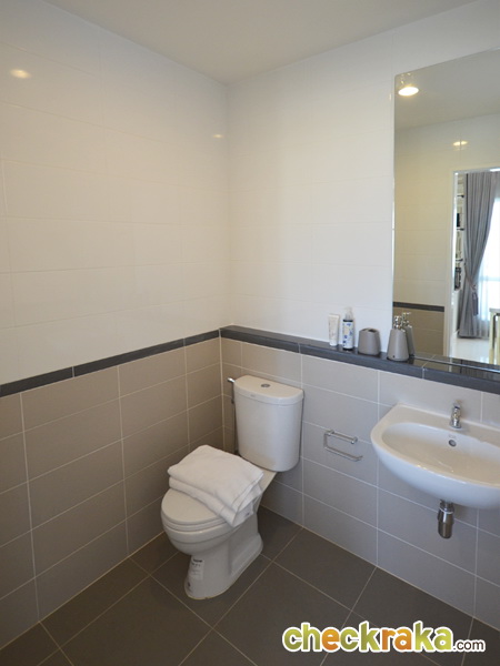 ห้องน้ำชั้นบนแบ่งส่วนแห้งส่วนเปียก และทำให้เข้าได้สองทางเหมือนชั้นล่าง