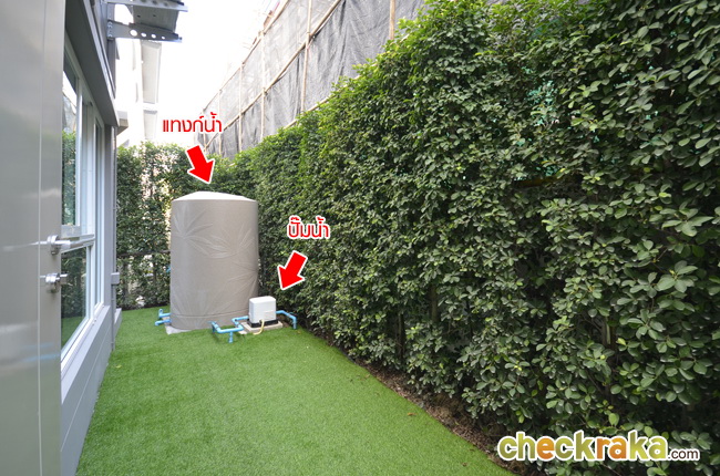 ด้านหลังบ้านมีแทงก์น้ำ และปั๊มน้ำแถมให้