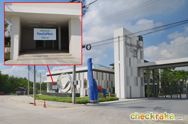 ด้านซ้ายมือโครงการ มีแผนจะเปิด Family Mart มีการแขวนป้ายผ้าแจ้งไว้แล้ว