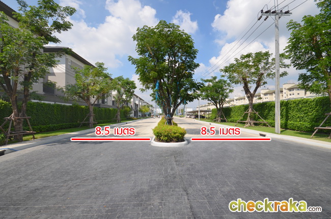 ถนนในโครงการเป็นคอนกรีตเสริมเหล็ก บริเวณด้านหน้าทำเกาะกลางไว้ แต่ละเลนจะมีความกว้าง 8.5 เมตร