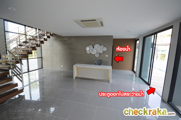 เข้ามาด้านใน Lobby ซึ่งตอนที่ทีมงานไปเยี่ยมชมนั้นสร้างเสร็จหมดแล้ว เหลือเก็บงานและตรวจสอบระบบในสระน้ำเพียงเล็กน้อย แต่ก็พอมองเห็นถึงสไตล์ และความกว้างขวางของคลับเฮ้าส์ได้