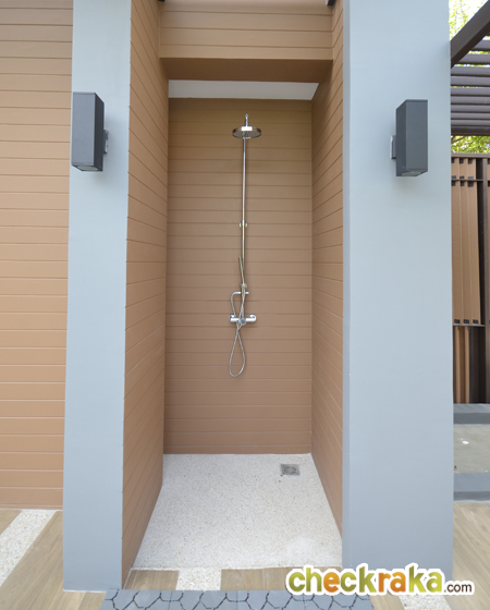 ตกแต่งผนังด้วยกระเบื้องเซรามิก ไม่ได้ติดตั้งฝักบัวสำหรับอาบน้ำมาให้